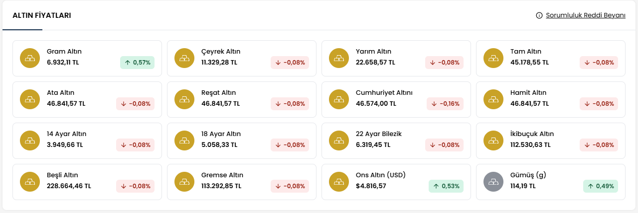 - Gram Altın: Güncel piyasa koşullarına göre değişken